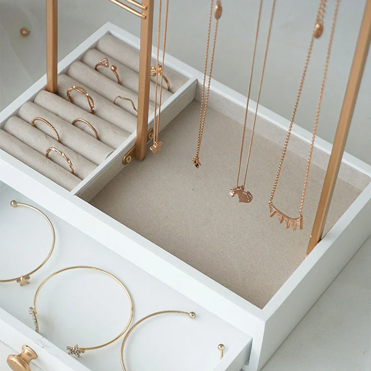 Üst qat açıq ekran sahəsi: Qızılı metal çərçivə, boyunbağı, sırğa və bilərzik asmaq üçün uyğundur. Onu görmək asandır və lazım olduqda əldə edilə bilər.